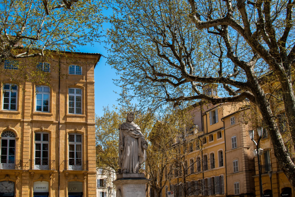 Surnommée la ville aux mille fontaines, Aix-en-Provence se distingue par ses eaux vives qui ponctuent ses rues et ses places. Le Cours Mirabeau, artère emblématique de la ville, en abrite quatre parmi les plus célèbres, chacune racontant un pan de l’histoire aixoise.